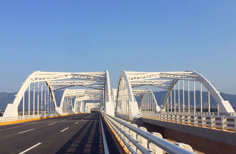 Triple arch bridge, the total length of 1.4 km bridge, the maximum span of 208 meters